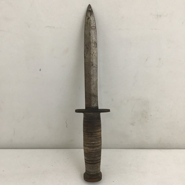 Vintage Case Steel Trench Knife w/ Leather Disk Handle (2 3/8"W x 11 3/8"L)