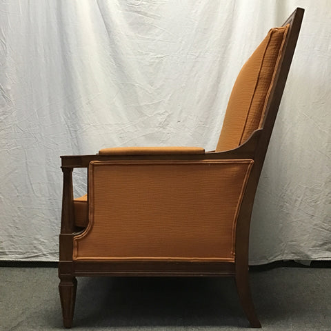 Vintage Clyde Pearson Dark-Stained Solid Cherry & Orange Upholstered Armchair (26"W x 34"D x 44"H)