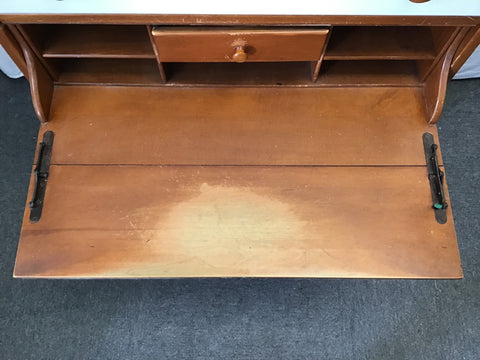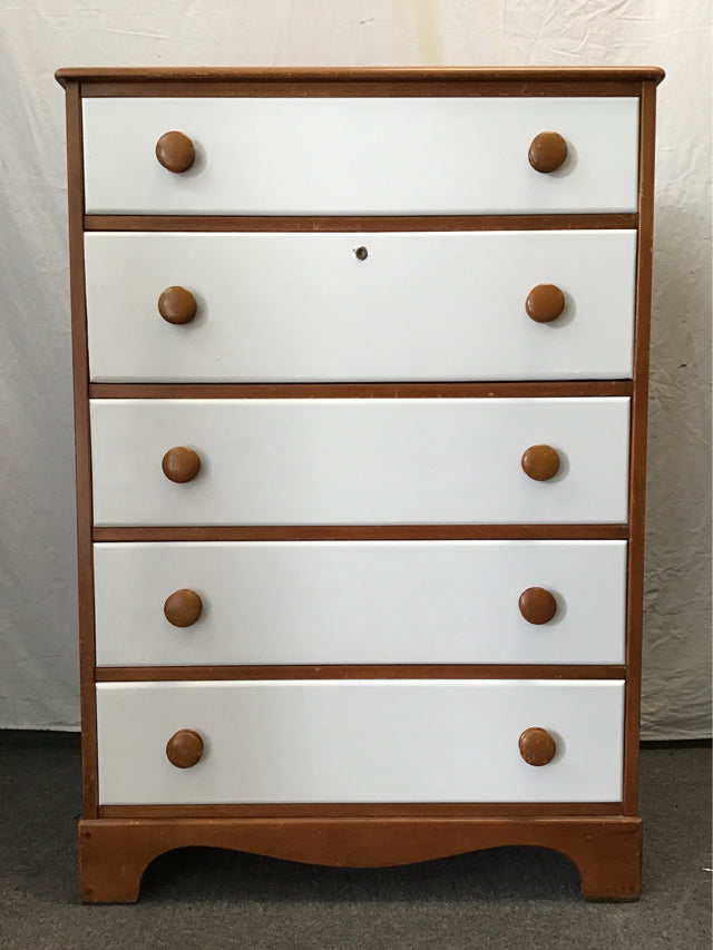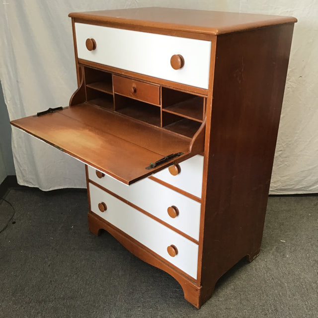 Vintage Continental Furn. White-Painted & Medium-Stained Solid Maple 4-Drawer Chest of Drawers w/ Pull-Out Secretary Desk Drawer (32"W x 21"/34"D x 46"/30"H)