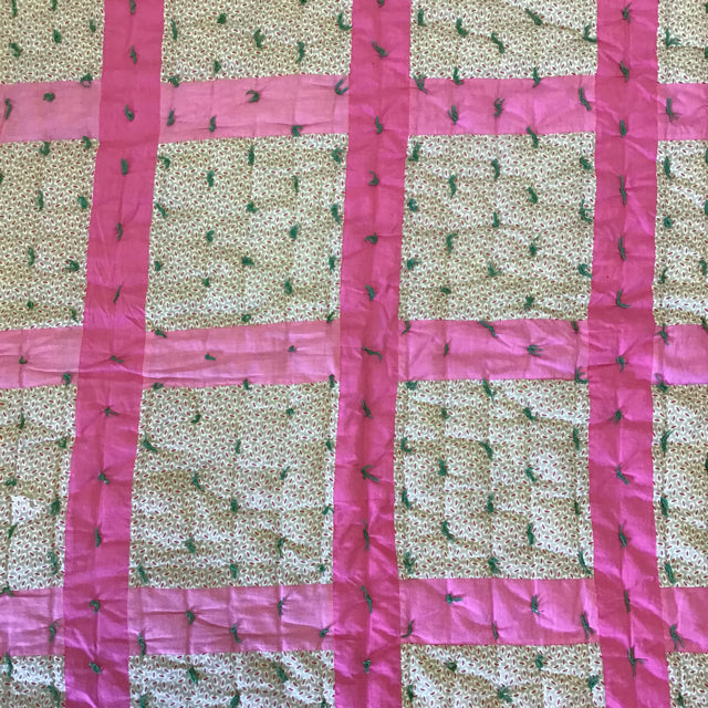 Vintage Handmade Pink & Green Full/Queen Quilt (64"W x 80"L)