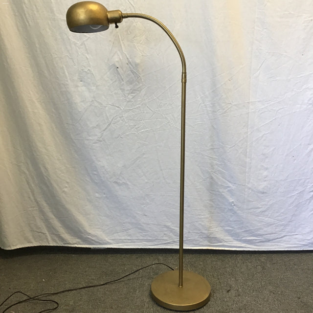 Vintage MCM Gold Metal Gooseneck Floor Lamp [See: Light Wear] (21"W x 10"D x 47"H)