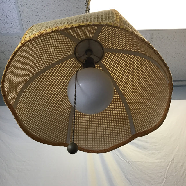 Vintage MCM Hanging Paper & String Swag Lamp (18"W x 12"H + Chain)