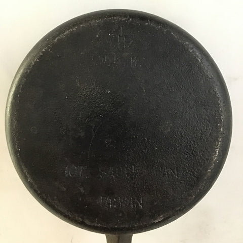 Vintage Taiwan Cast Iron 1QT Saucepot w/ Lid & Medium-Stained Wooden Handle (14"W x 6"D x 5"H)
