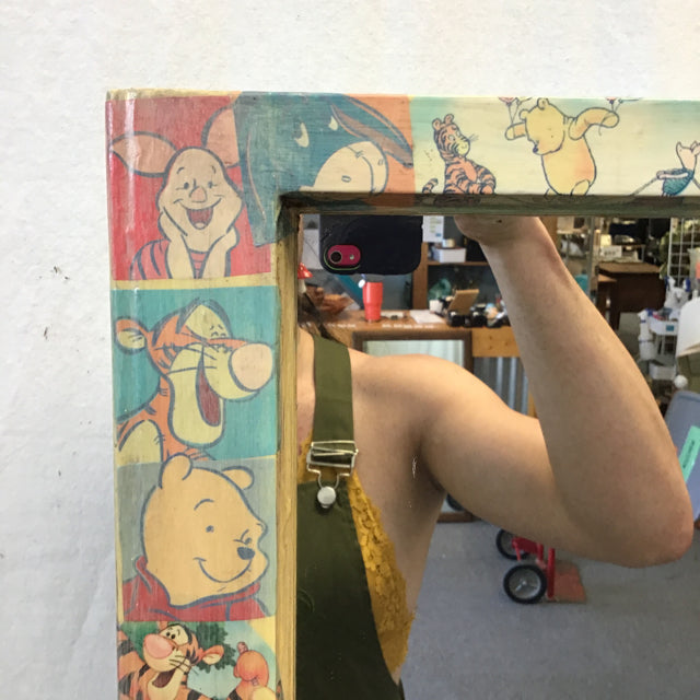 Vintage Yellow Painted & Pooh Decoupage Mirror (20"W x 2"D x 28"H)